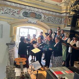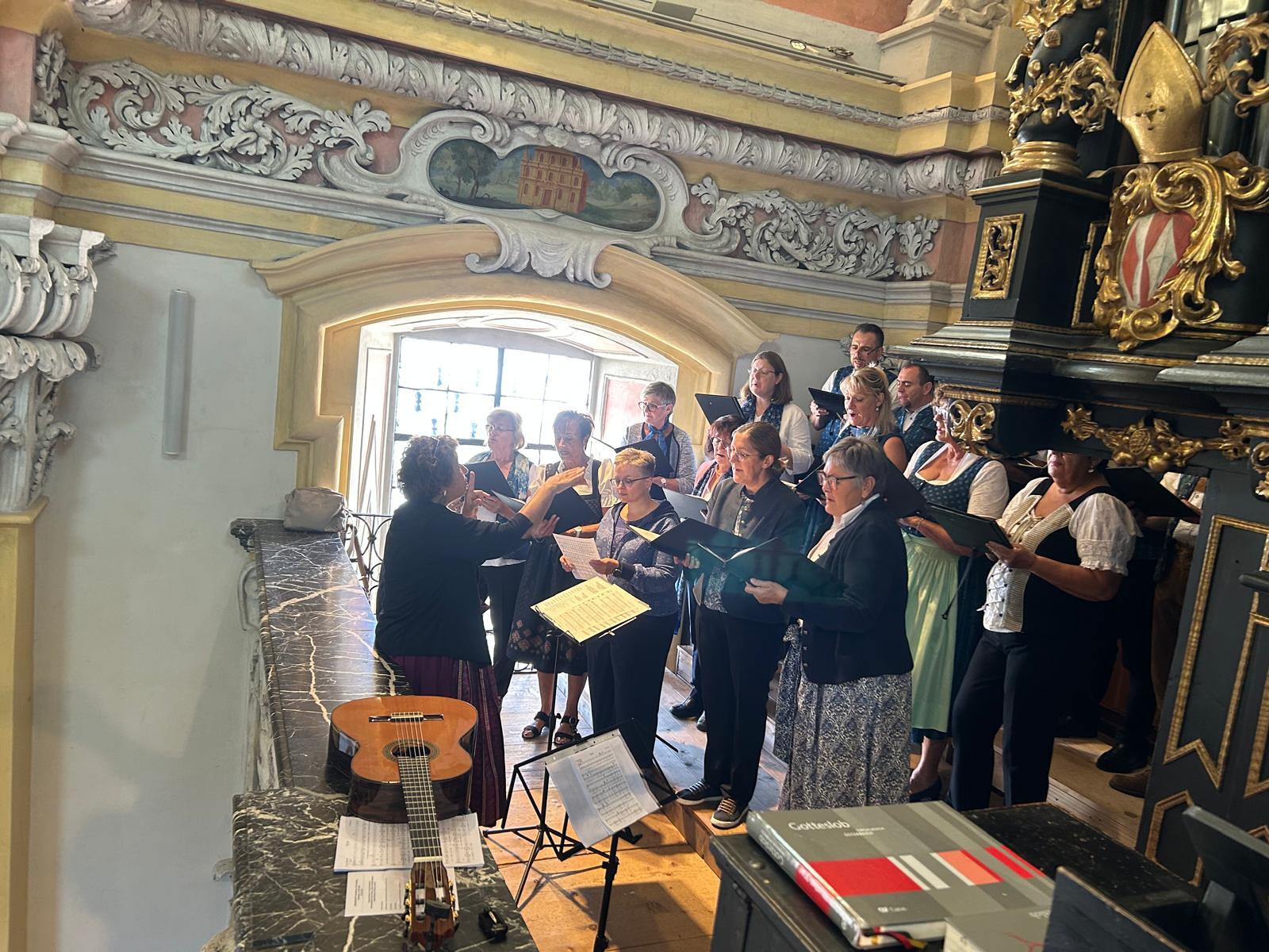 Am Sonntag, gleich nach dem Frühstück, macht wir uns auf in die Wallfahrtskirche nach Frauenberg. Eine wunderschöne Kirche mit barocken und frühbarocken Altären und Rokoko-Statuen. In traumhafter Lage hoch über dem Ennstal konnten wir an diesem Morgen eine wunderschöne Aussichtgenießen. In der Basilika durften wir das Erntedankfest musikalisch gestalten. Wir sangen die „Gutauer Messe“ von Fritz Renhart. Harald Mayr (Harmonika) und Birgit Gruber (Gitarre) begleiteten uns mit Ihren Instrumenten. Einige Lieder, passend zum Fest ergänzten das musikalische Programm. Bei der anschließenden Agape mischten wir uns unter die Gottesdienstbesucher und es ergaben sich schöne Begegnungen.