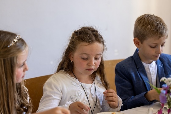 ... bei allen, die bei der Vorbereitung und Gestaltung dieses Tages wichtige Aufgaben übernommen haben: bei den Eltern und den Tischmüttern, bei der Musikkapelle, beim Elternverein für die Agape im Pfarrgarten, bei der KFB für die Bewirtung beim Erstkommunionfrühstück und bei Gabi Lahner die wieder in bewährter Weise den großen Erstkommunionchor geleitet hat.
