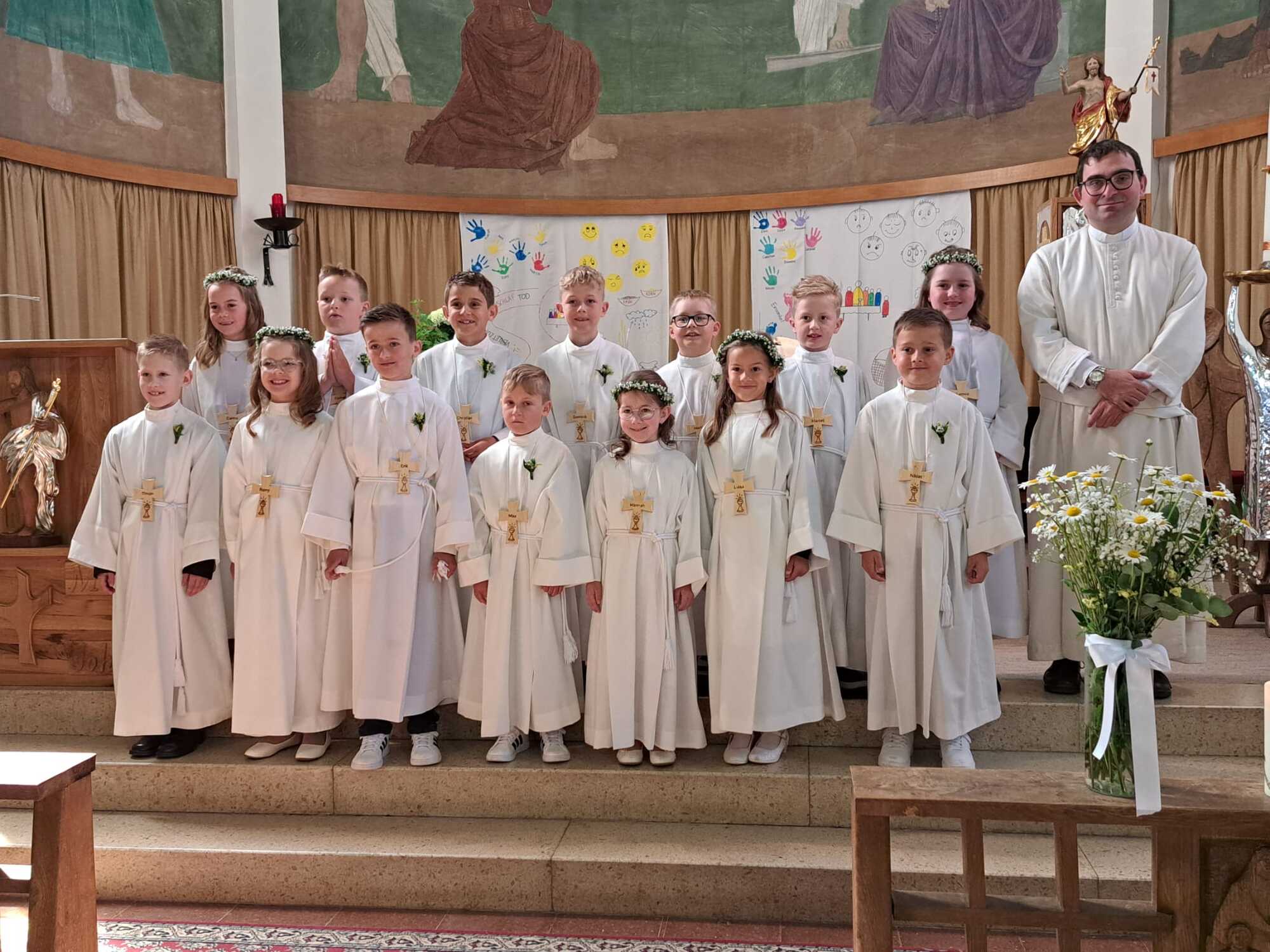4 Täuflinge aus dem Vorjahr feierten mit uns diesen Gottesdienst. Es waren auch die Erstkommunionkinder und Firmlinge dabei. 6 Erstkommunionkinder holten noch ihre Tauferneuerung nach.