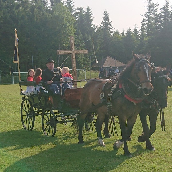 Ein schönes Fest war der heurige Pfingstritt des Reit- und Fahrvereins Pfarrkirchen mit der traditionellen Feldmesse auf der Platte. Obmann Jürgen Schwarzbauer begrüßte alle Teilnehmer und dankte für das Mittun und die Disziplin während der Messe. Herr Kaplan Hermann Josef Hehenberger hat sich wieder bereit erklärt, trotz straffem Zeitplan, die Hl. Messe zu zelebrieren. Er segnete am Beginn der Messe die Pferde und Reiter mit der Bitte an Gott, Unheil und Krankheit fern zu halten. Musikalisch wurde der Gottesdienst von den Jagdhornbläsern gestaltet.