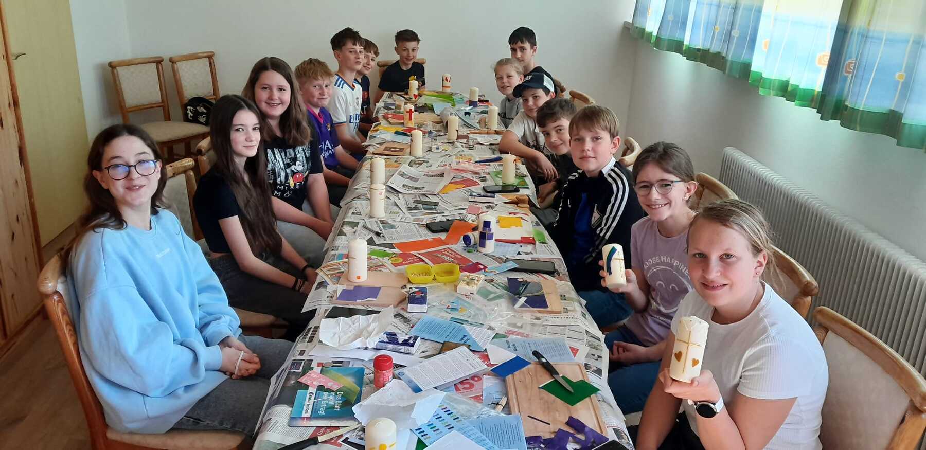 Firmlinge verzieren Kerzen für ältere und kranke Menschen