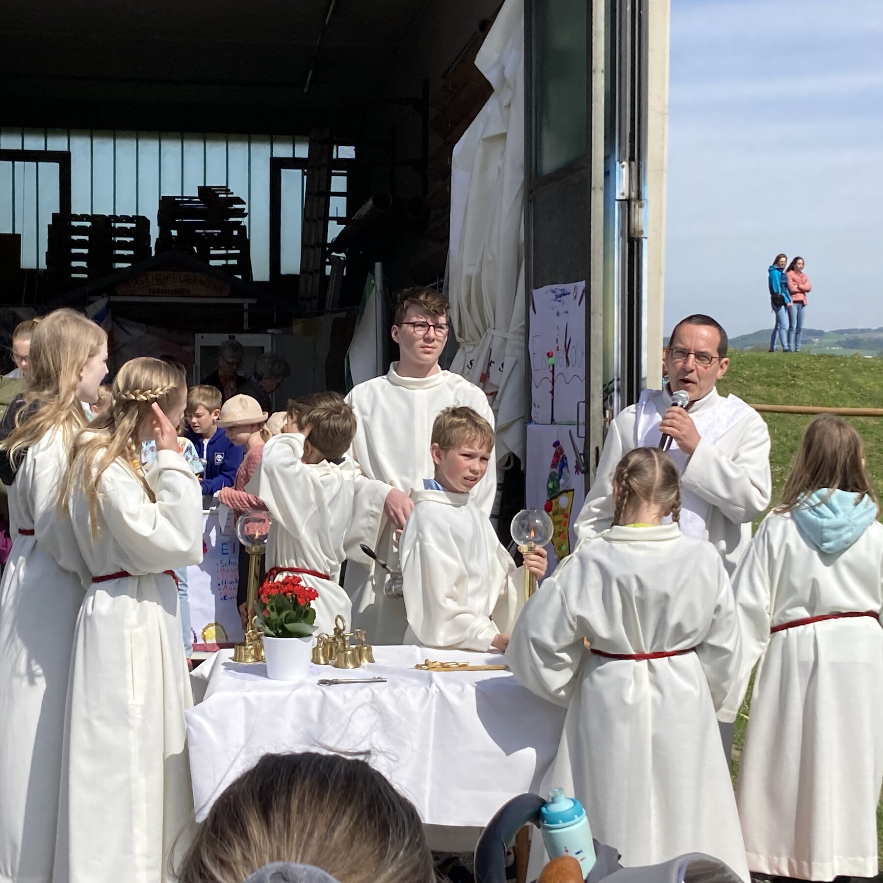 Nach einer kurzen Maiandacht und der Maibaumsegnung durch Seelsorger Helmut Eder feierten viele Gäste am Dorfplatz - kulinarisch verwöhnt u.a. von den pfarrlichen Gruppierungen mit leckeren Mehlspeisen und durch den Eisverkauf der Minis.