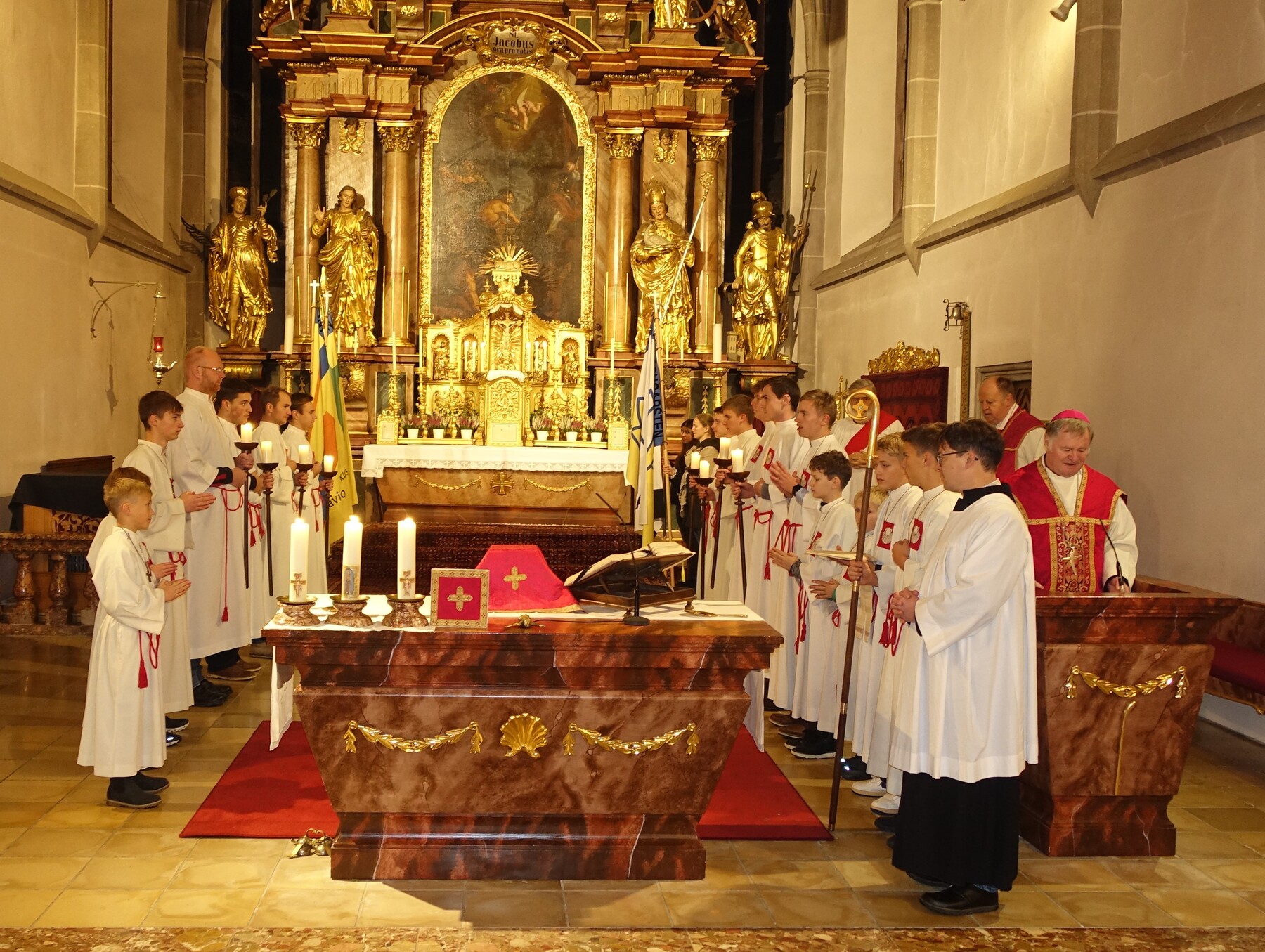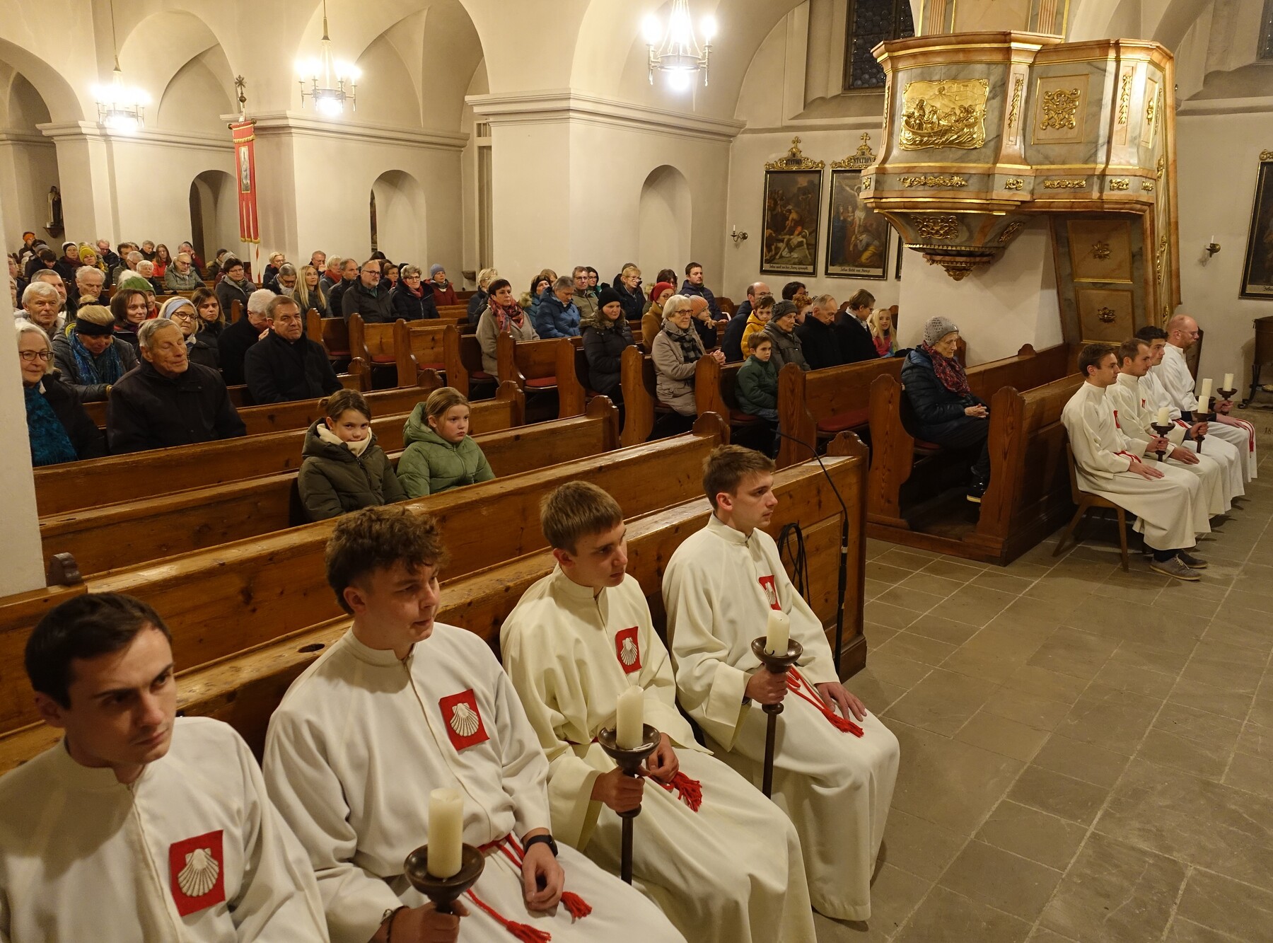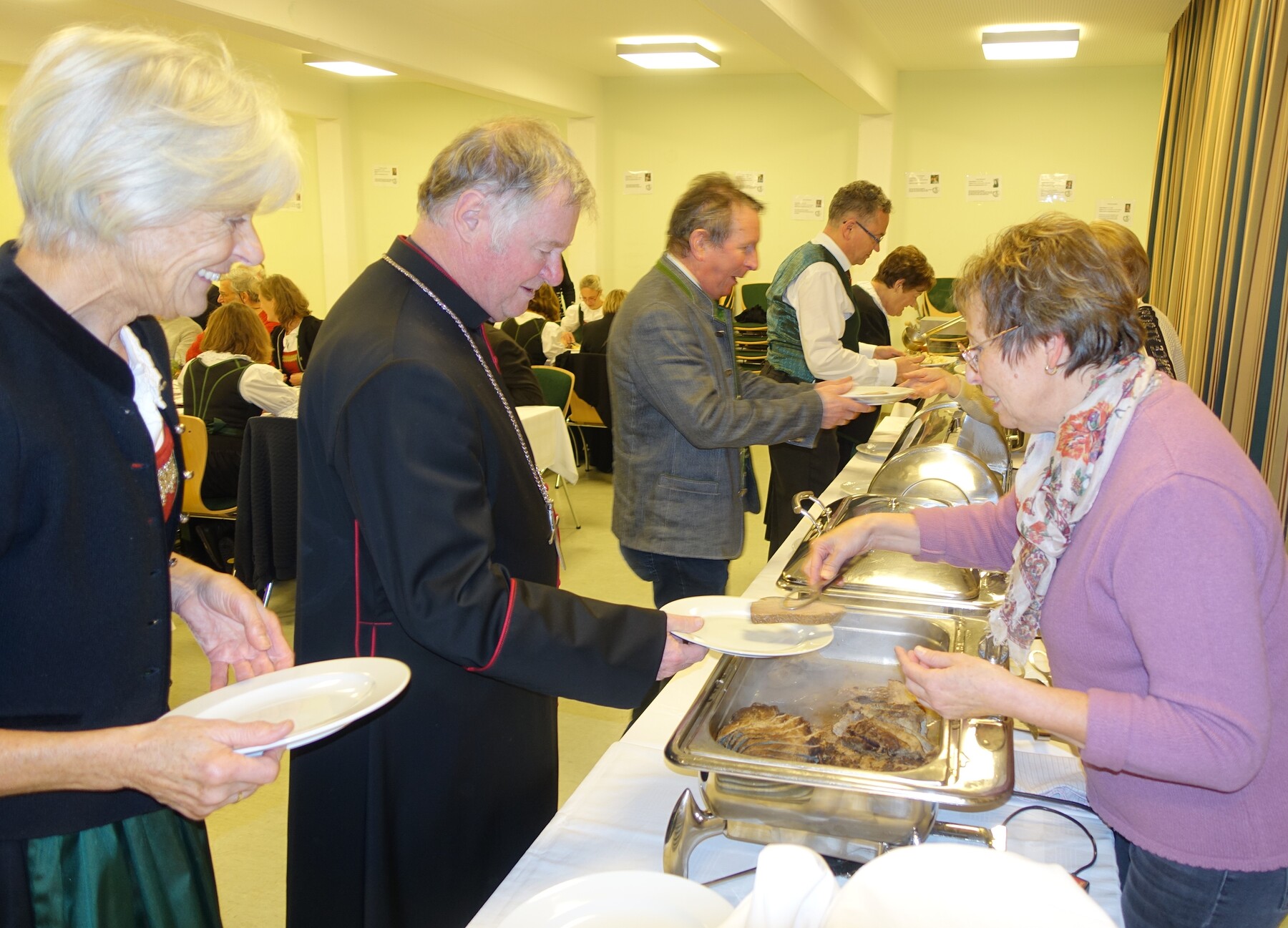 Im Rahmen der Dekanatsvisitation feierte Bischof Manfred Scheuer diesen Gottesdienst mit der Pfarrgemeinde und war ebenso bei der anschließenden Jause für die Musikgruppen im Pfarrheim dabei.